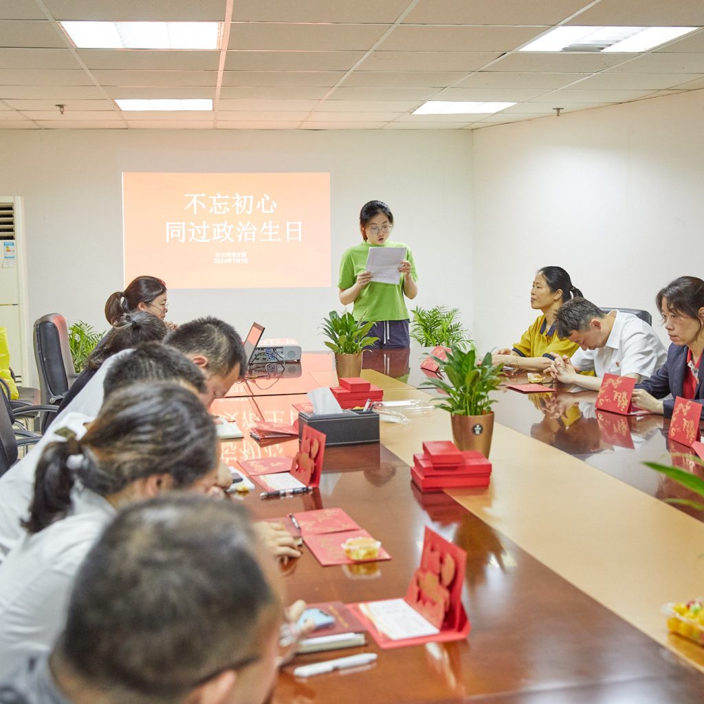 同過政治生日,重喚入黨初心。會上率先開啟了一場特殊的“政治生日”,全體黨員觀看了短片《十份入黨申請書》,重溫習(xí)近平總書記在梁家河充滿艱辛與考驗的入黨之路?!拔抑驹讣尤胫袊伯a(chǎn)黨,擁護(hù)黨的綱領(lǐng)……”隨后,組織重溫入黨宣誓儀式。在鮮紅的黨旗下,全體黨員舉起右手、緊握拳頭、莊嚴(yán)宣誓,一字一句讓大家回憶起入黨時的激動心情。一句句鏗鏘誓言見證著新時代共產(chǎn)黨員的莊嚴(yán)承諾,也回答了103年不變的初心使命。黨員們結(jié)合自己的工作生活,暢談分享回顧入黨前后的成長歷程,這樣的“儀式感”不僅重喚黨員入黨的熾熱情懷,更是激勵廣大黨員常拭信仰之燈,常省信仰之問,做到對黨虔誠而執(zhí)著、至信而深厚,鼓勵員工做到初心不改,拼搏進(jìn)取干一流工作,振奮精神創(chuàng)一流業(yè)績。